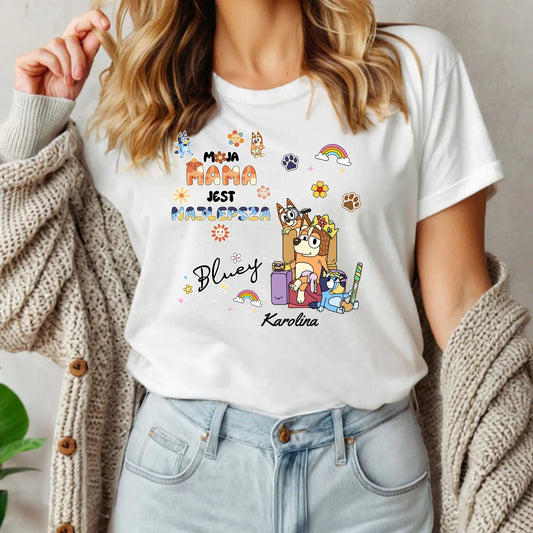 Koszulka Dla Mamy, Motyw Bajkowy Bluey, Koszulka Personalizowana, Idealny Prezent Dla Mamy, Prezent Z Okazji Dnia Kobiet, Prezent Dzień Mamy #TB03